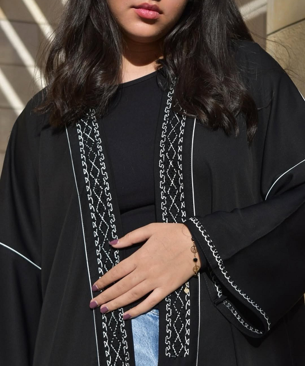 The black abaya, with its embroidered stitching and rhinestones, symbolizes modesty and elegance. Its versatility makes it suitable for formal and semi-formal occasions, uniting Muslim women in a shared sense of faith and cultural identity.